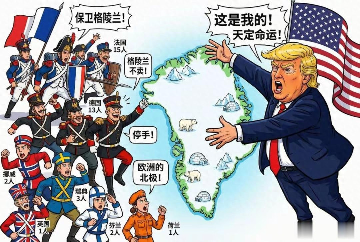 欧洲难道真敢与美国直接开干?一边是欧盟委员会主席冯德莱恩的强硬发声,称欧盟与丹麦人民站在一起。一边是德国、法国、荷兰、芬兰、挪威、瑞典等欧洲国家为守卫格陵兰岛举行联合军演。