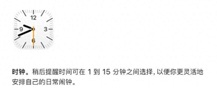在今年 WWDC25 开发者大会上,苹果推出了 iOS 26 系统,对闹钟功能进行了小幅优化——将“稍后提醒”时长从固定的9分钟升级为可自定义 1 至 15 分钟。